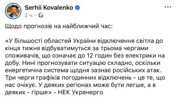 С наступлением холодов ситуация может только усугубиться: дефицит мощностей, атаки на объекты, дальнейшие ограничения. Уже сейчас некоторые энергетические компании говорят, что в самом худшем сценарии люди могут оставаться без света на 20 часов в сутки.